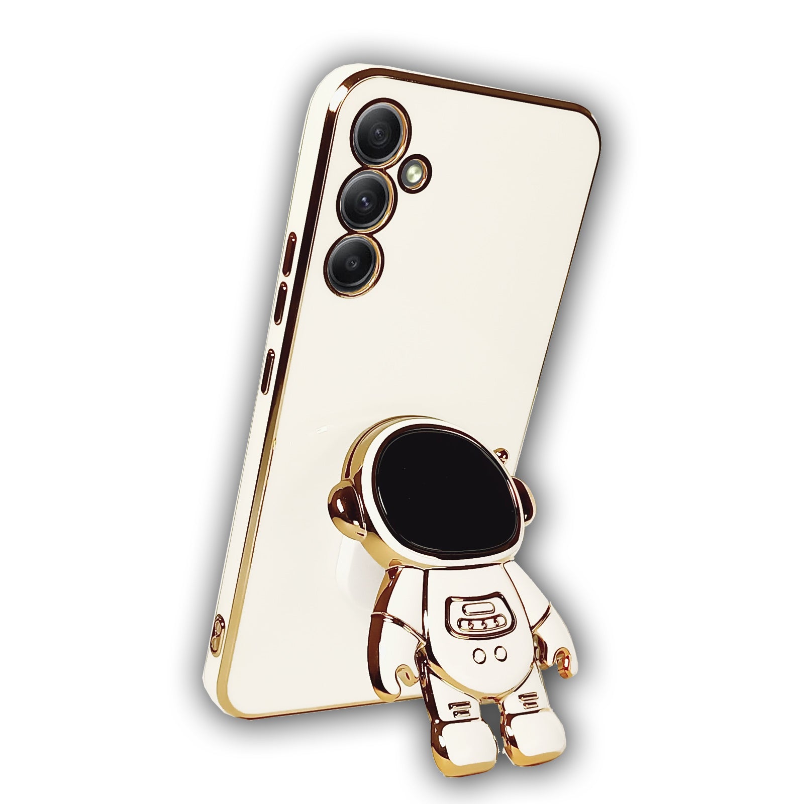TPU Silikon Hülle Weiß-Gold mit 3D Astronauten-Ständerfunktion